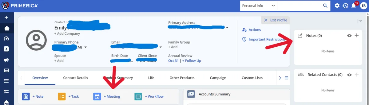 Click the 'Meeting' icon to add a CLIENT FOLLOW-UP REMINDER every 3 months!
