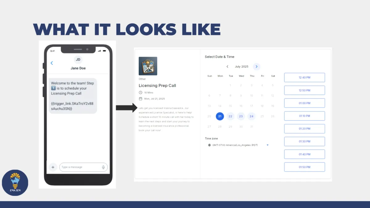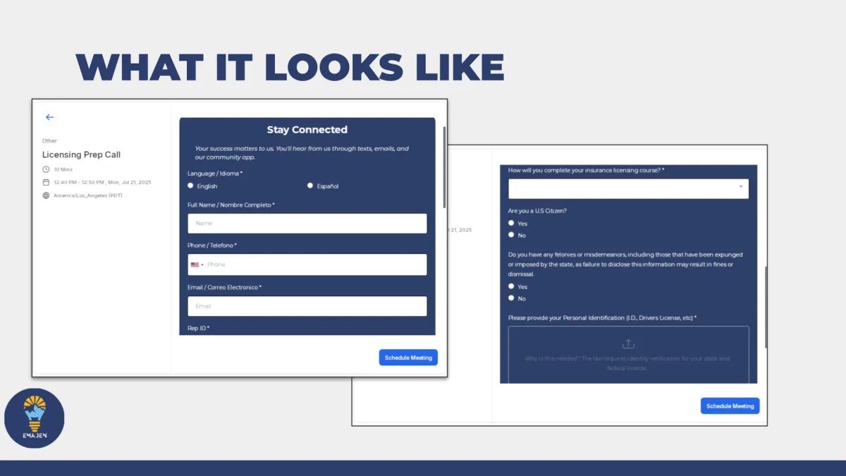 The automated system should respond with a link to our licensing Specialists Calendar. Schedule the meeting.
