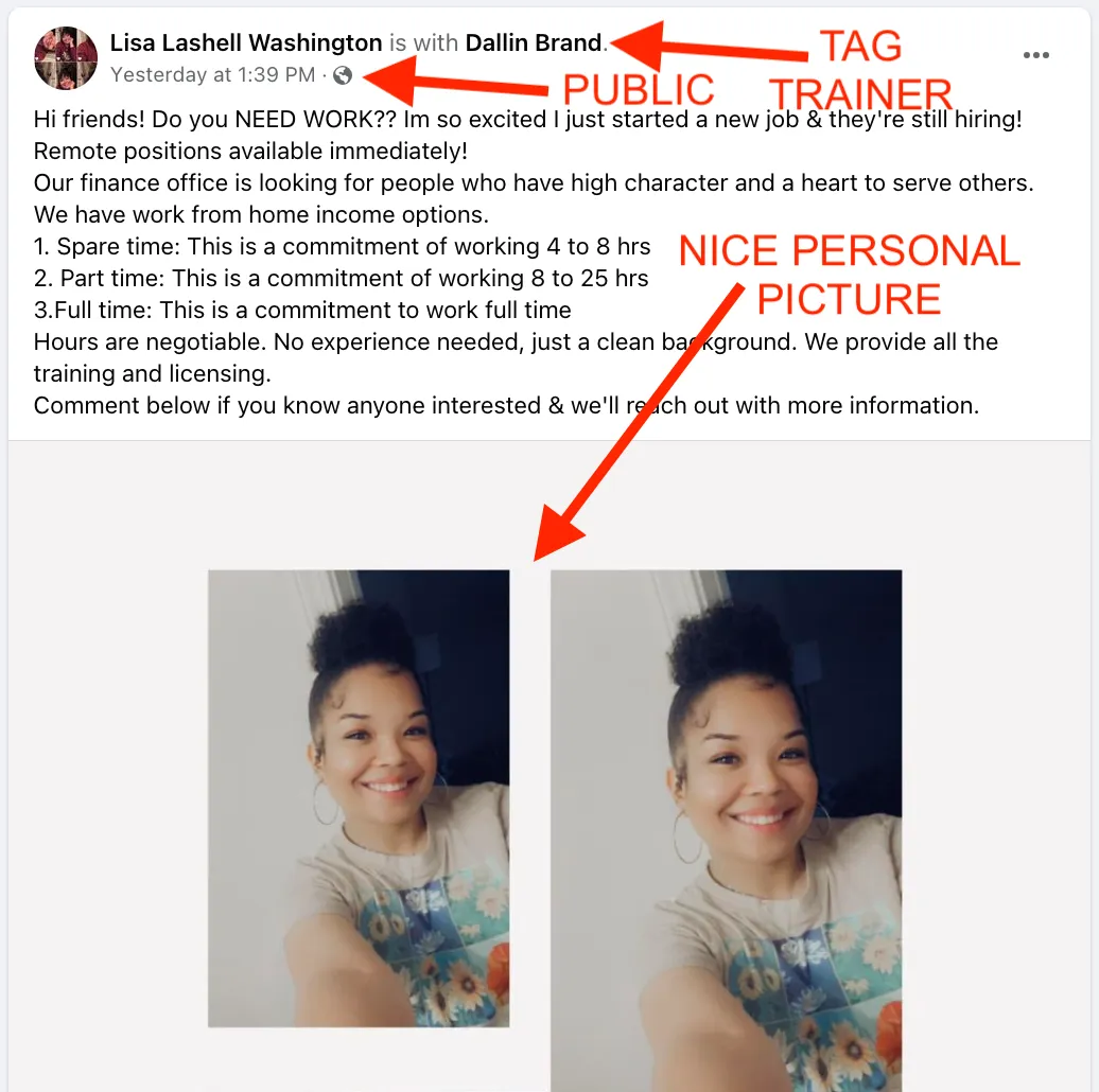 1. Have your TRAINEE make a Facebook post with the CAPTION and a NICE PERSONAL PHOTO